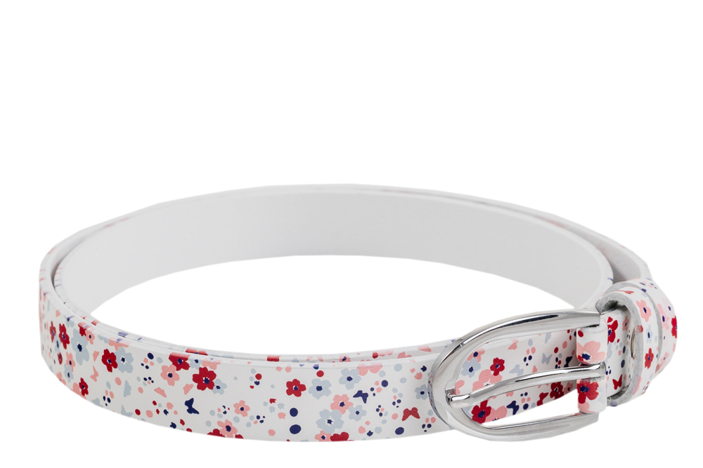 Тонкий ремешок для девочки из натуральной кожи с цветным принтом станет ярким аксессуаром станет стильным атрибутом для современного стиля, а также идеально подходит для повседневного использования. Длина до 90 см, возможно укоротить до нужной длины: предусмотрена специальная защита края у пряжки, чтобы после обрезания он не потрепался. Ширина 20 мм. Лицевая поверхность ремня из натуральной кожи имеет цветной принт - рисунок с цветочками. Пряжка из специального сплава не окисляется и не вызывает раздражения. Сделано в России, ТМ Котофей.